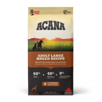 Ofera-i cainelui tau o dieta echilibrata impreuna cu ACANA Heritage Adult Large Breed, bogat în proteine si carne de pasare proaspata, oua si peste prins in salbaticie