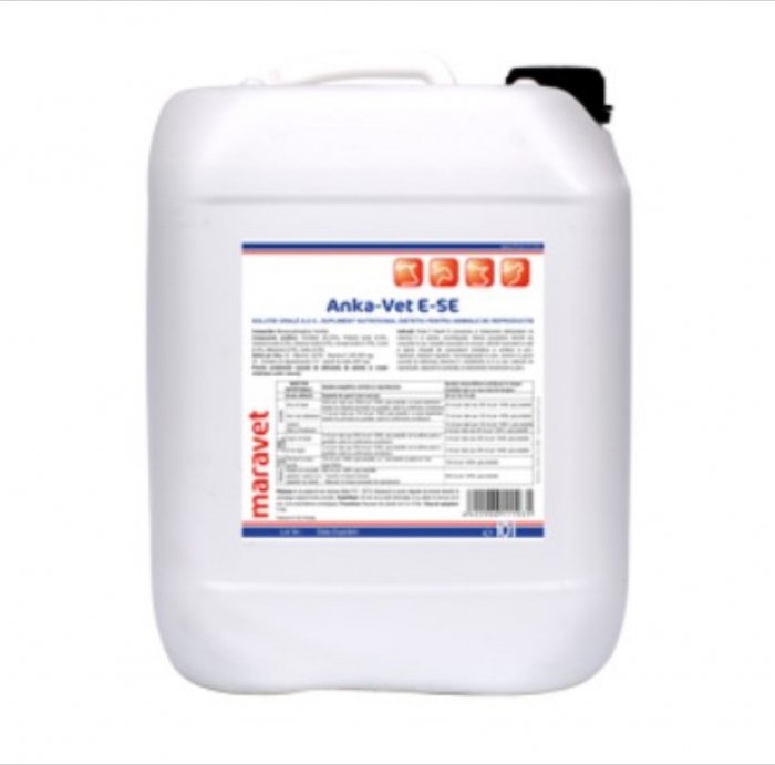 Anka-vet E-SE 10 L – Solutie orala a.u.v., supliment nutritional recomandat in prevenirea si tratamentul deficientelor de vitamina E si seleniu la bovine, ovine, porcine si pasari. Compozitie Vitamina E 100.000 U.I., seleniu (selenit de sodiu)…