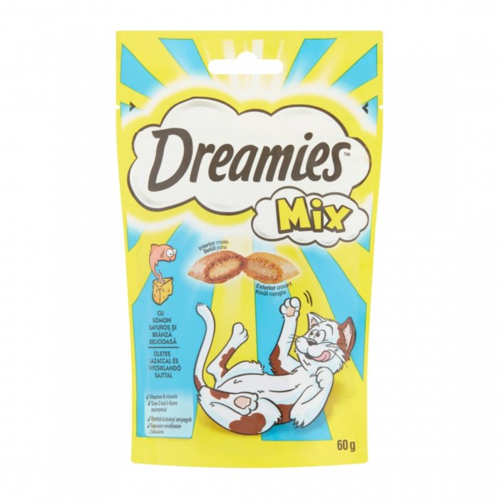 DREAMIES ,recompense pisici,pernute umplute cu branza si somon este o hrana complementara pentru pisoi si pisici adulte. Sub forma de pernite,aceste snack-uri delicioase sunt crocante la exterior si cremoase la interior.Pisica ta le va adora ,mai ales…
