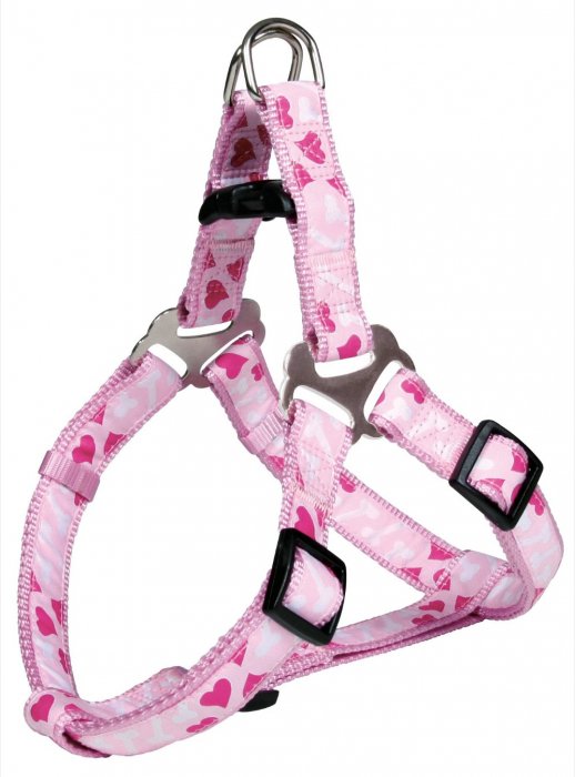 Ham Clasic Reglabil 40-50 cm 15 mm Ham Reglabil pentru caini. Dimensiuni: 40-50 cm 15 mm Culoare: roz Material: Nylon. Reglabil. Cu imprimeu: inimioare si oase