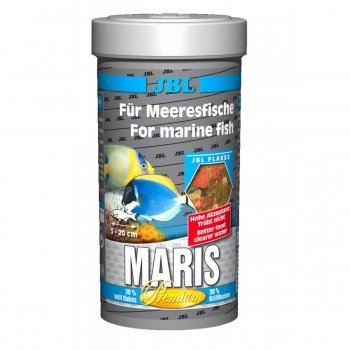 JBL Maris 250 ml, hrana premium sub forma de fulgi obtinuta 100% din ingrediente naturale pentru pestii marini.Contine 100% ingrediente naturale , 30% proteine si spirulina pentru pestii erbivori