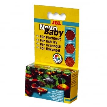JBL NovoBaby 3×10 ml, set complet de hrana crestere pentru pestii Guppy si alte specii de pesti vivipari constand in fulgi si particule de trei dimensiuni atent echilibrate