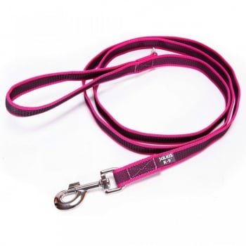 JULIUS-K9 Color & Gray, lesă antiderapantă cu mâner câini, 50kg, textil, bandă, 20mm x 2m, roz