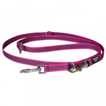 JULIUS-K9 Color & Gray, lesă antiderapantă dublu ajustabilă cu mâner câini, 2 carabine, 50kg, textil, bandă, 20mm x 2.2m, roz
