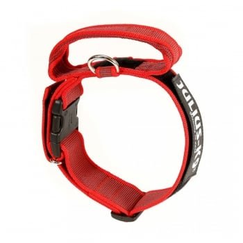 JULIUS-K9 Color & Gray, zgardă ajustabilă cu mâner câini, nylon, 40mm x 38-53cm, roșu cu gri