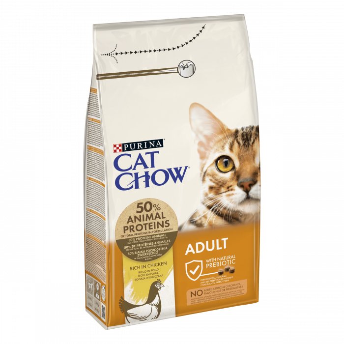 De ce CAT CHOW? Din 1926, pisicile au inspirat PURINA cu comportamentul lor natural incredibil. Pentru a le ajuta sa ramana extraordinare in mod natural, am creat CAT CHOW: o reteta care contine proteine de calitate si ingrediente naturale….